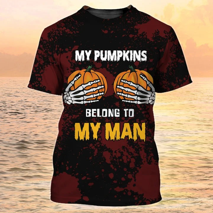 3D Pumpkin Halloween Shirt Men Women, My Pumpkins Belong My Man Shirt, Halloween Gift For Son Husband
