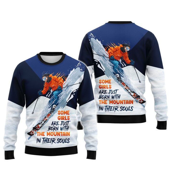 3D Skiing Hoodie – 'Born with the Mountain in Their Souls' Winter Sportswear
