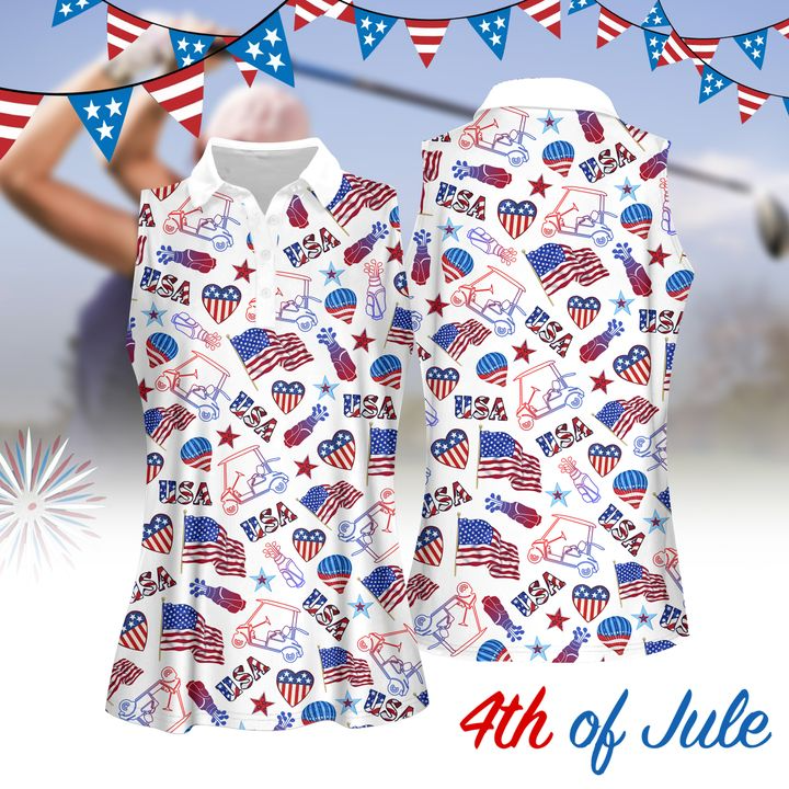 4th Of July Pattern Women Golf Apprarel, Women Short Sleeve Polo Shirt, Sleeveless Polo Shirt