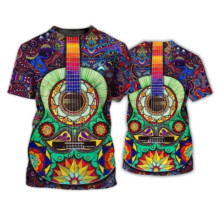 Amazing Hippie Painting 3D Tshirt, Hippie Shirts For Men And Women, Unisex Hippie Shirt, Hippie Classic Guitar Shirt