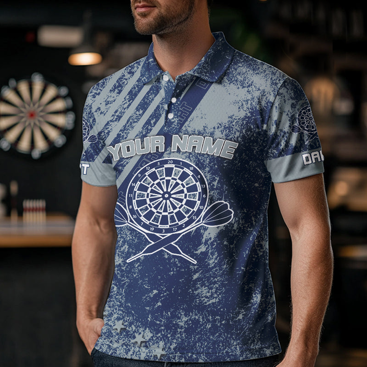 Blue Dartboards Custom Grunge Style Dart Shirts For Men, Dart Team Jerseys
