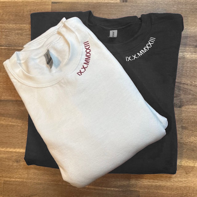 Custom Embroidered Roman Numeral Sweatshirt With Initial On Sleeve For Couple Valentine's Day Anniversary