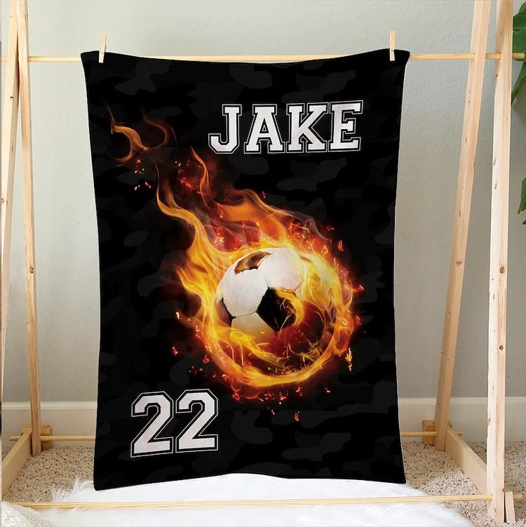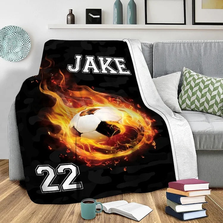 Custom Soccer Throw Blanket, Custom Soccer Name And Number Blanket, Soccer Lover Blanket Gift For Boy Girl