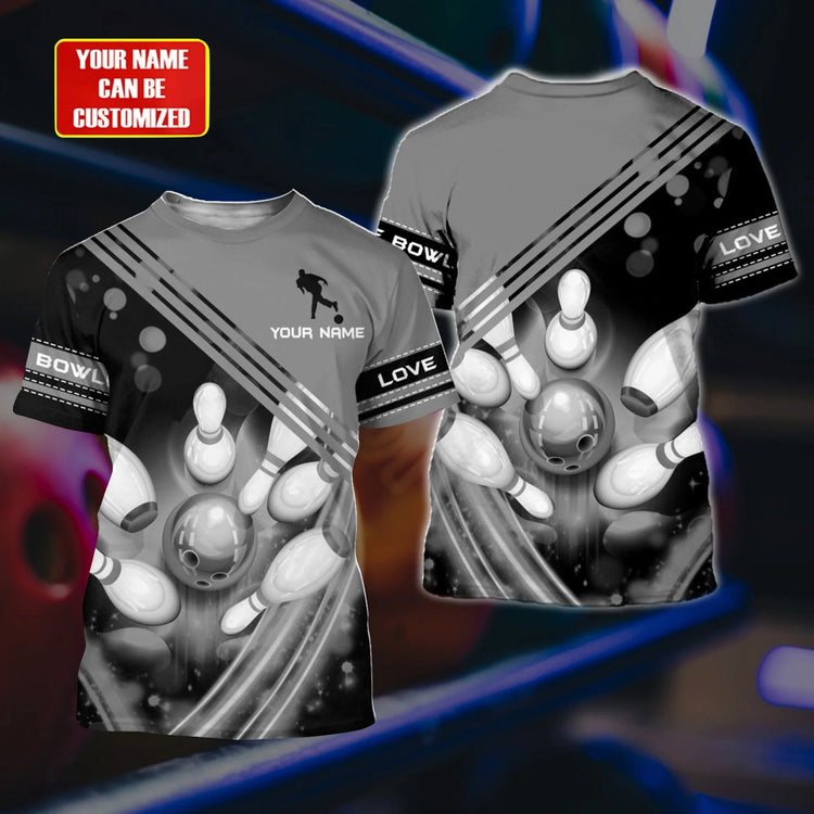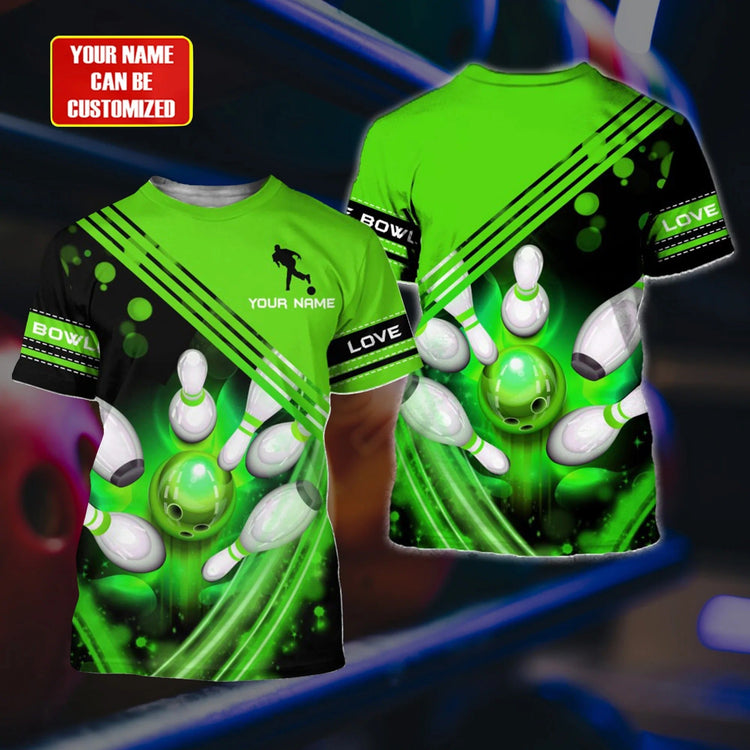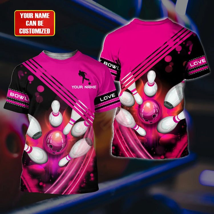Customized With Name 3D All Over Printed Orange Bowling Shirt, Present To Bowling Lover