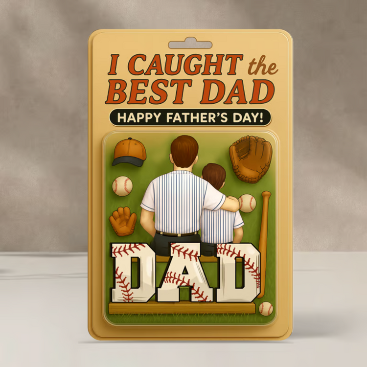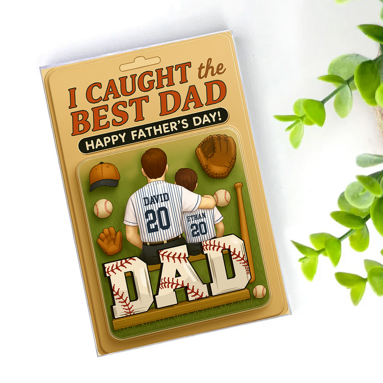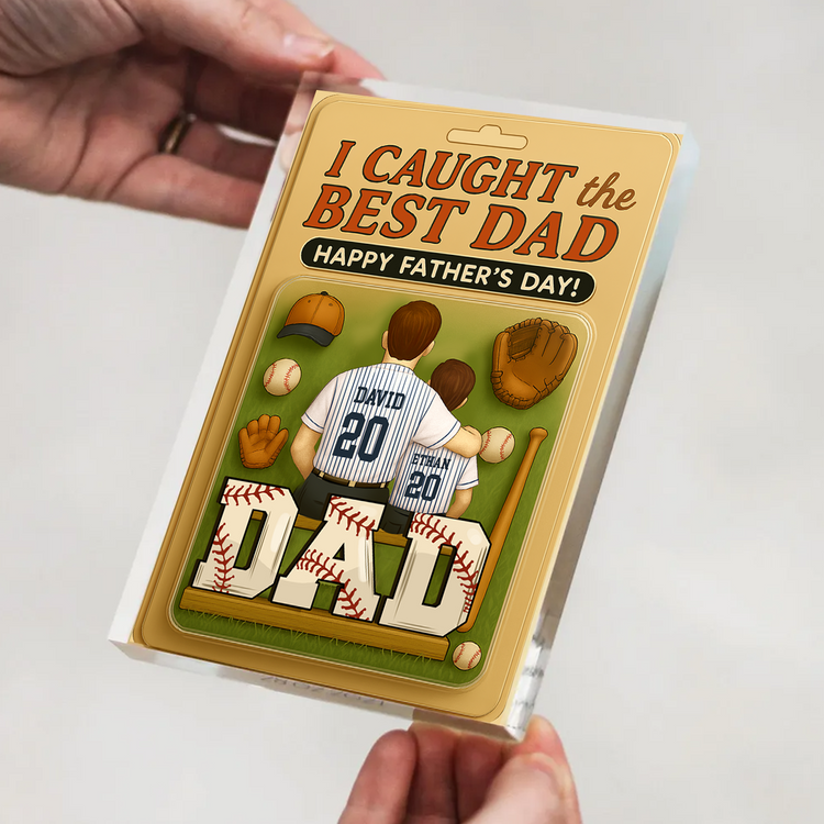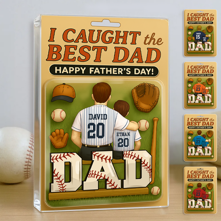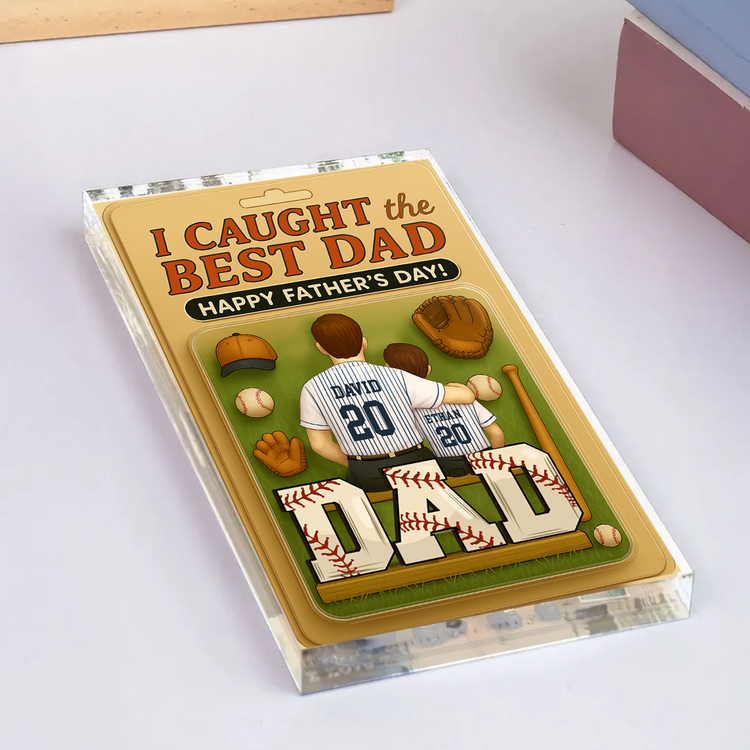 I Caught the Best Dad Baseball Custom Figure Personalized Acrylic Block Plaque, Father's Day Gift For Dad And Kids Acrylic Block Plaque FUll Size