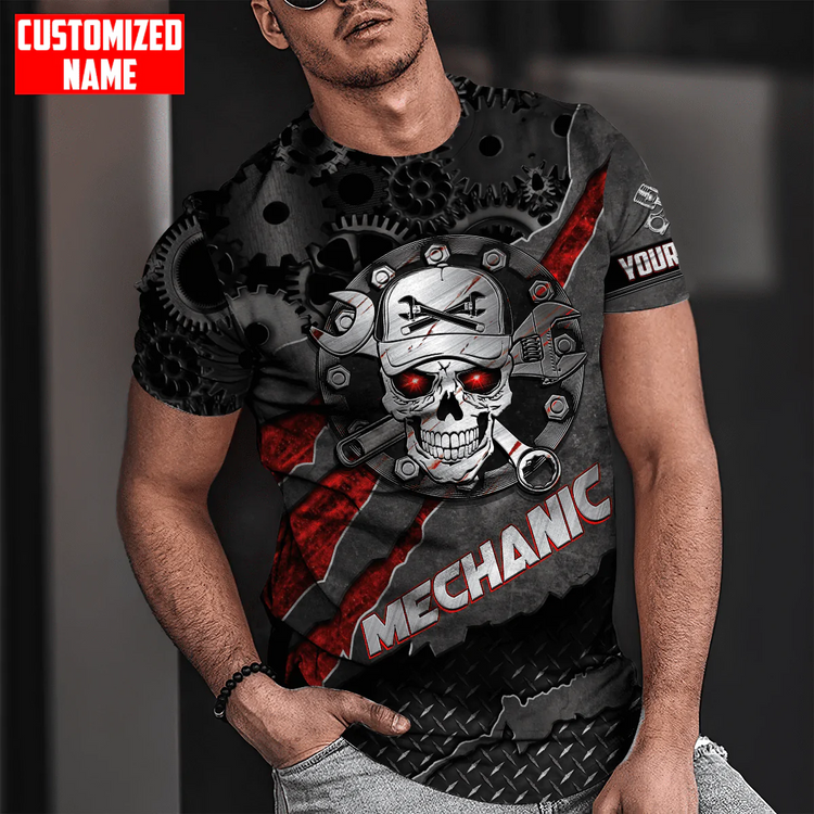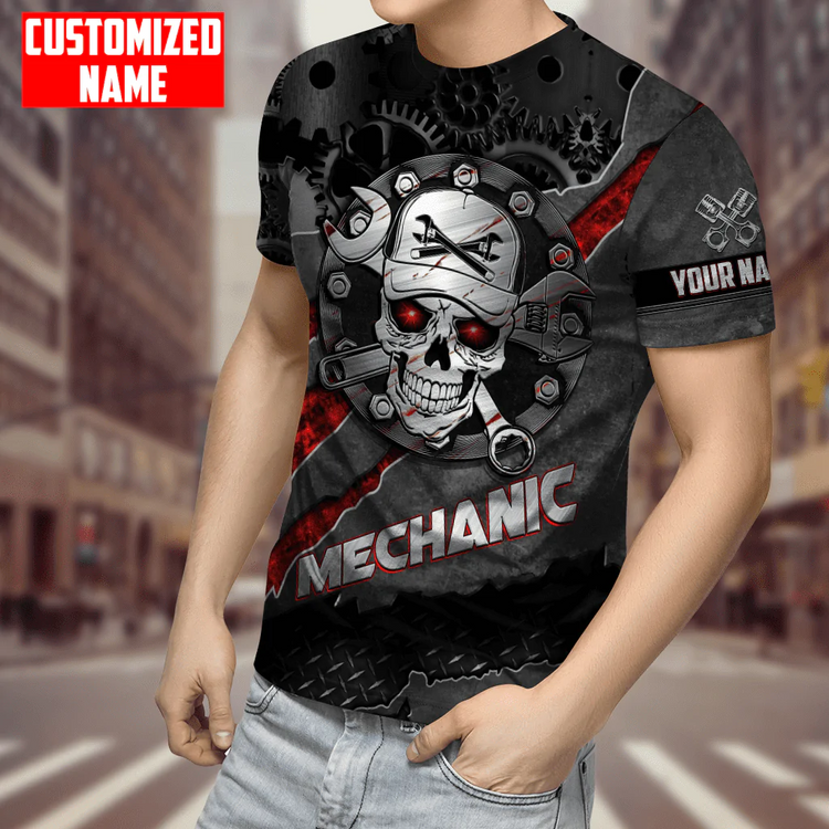 Personalized Mechanic Skull Tool T Shirt Metal Pattern Mechanic Shirts